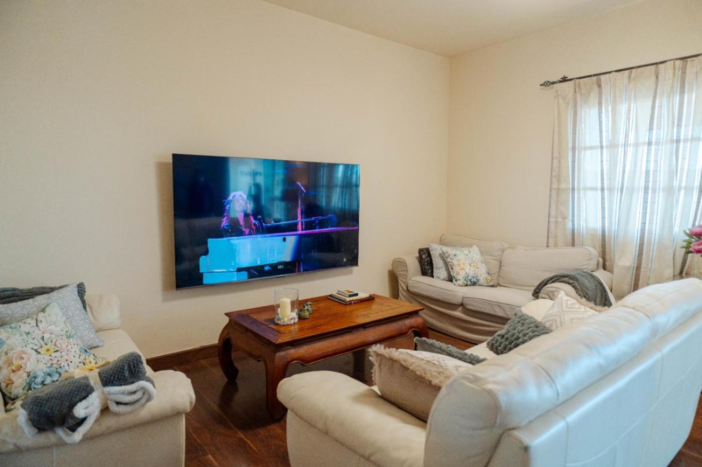 Four-Bedroom House. The private pool is the special feature of this holiday home. Featuring 4 bedrooms and 2 bathrooms, this spacious holiday home offers a living room and terraceyou can relax. The holiday homes kitchen is available for cooking and storing food. Boasting a balcony with garden views, this holiday home also offers air conditioning and a flat-screen TV. The unit has 8 beds. ;