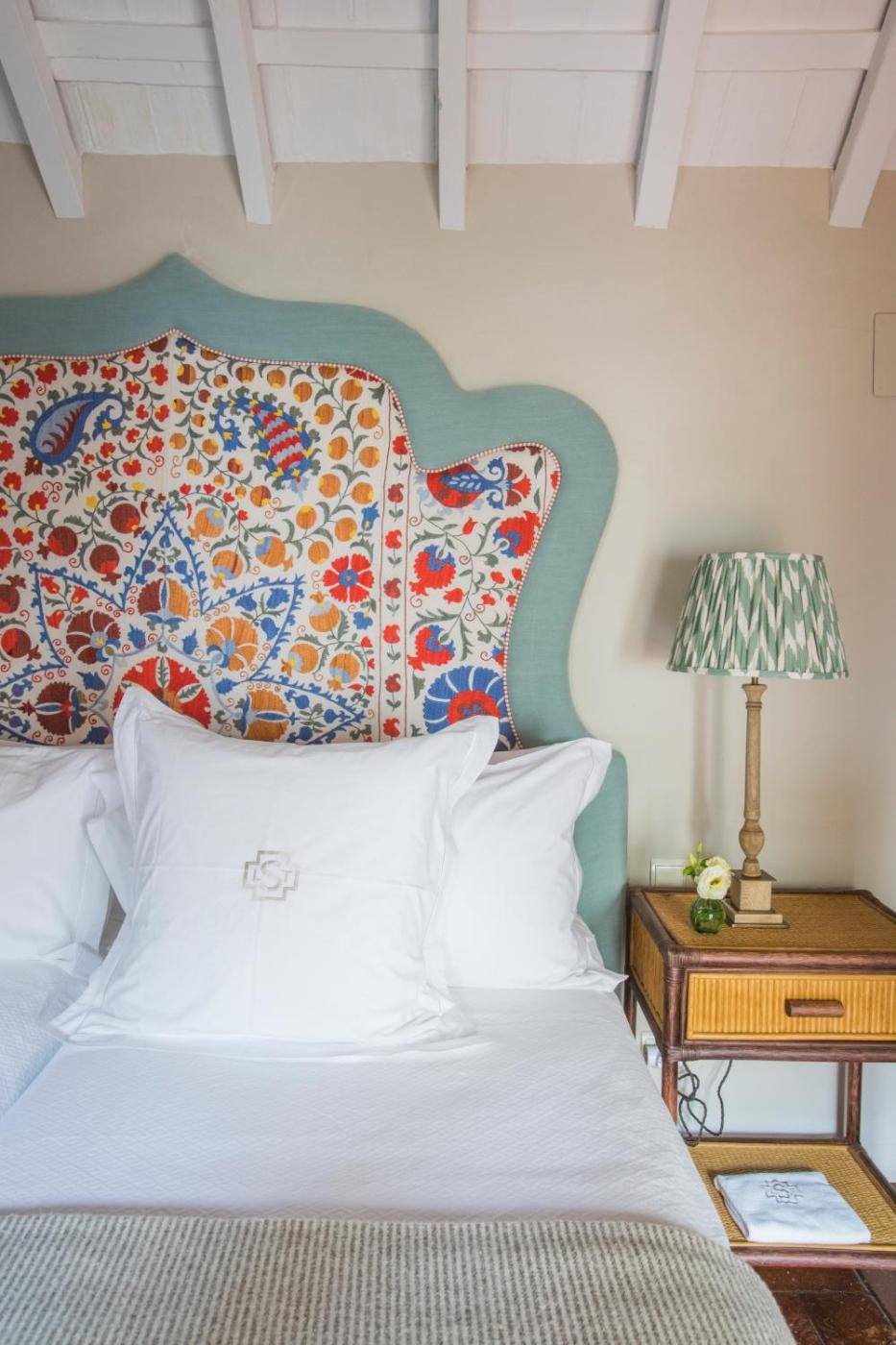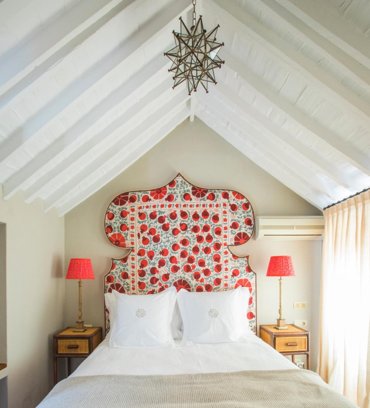 La Sacristia maintains its original beamed ceilings and stone archways. Each spacious room has simple décor with tiled floors.