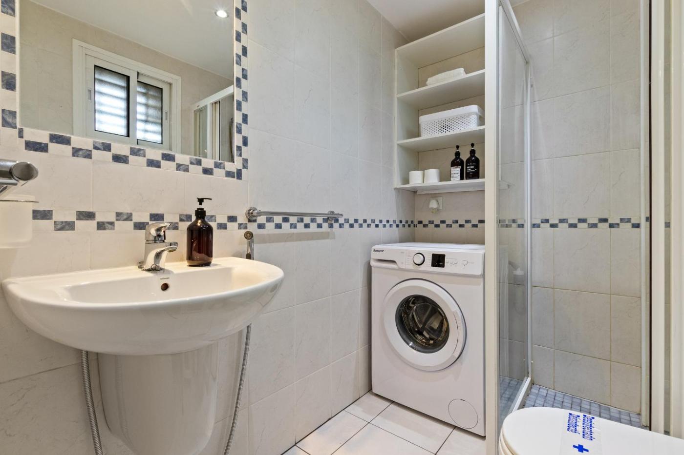 One-Bedroom Apartment. This apartment includes 1 living room, 1 separate bedroom and 1 bathroom with a shower and free toiletries. In the fully equipped kitchen, guests will find a stovetop, a refrigerator, kitchenware and an oven. The air-conditioned apartment offers a flat-screen TV, a washing machine, a coffee machine, a wardrobe as well as sea views. The unit has 3 beds.